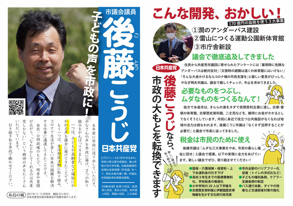 日本共産党糸島市委員会 事務所:糸島市前原東1丁目6-71 1階 電話/FAX(092)321-0213